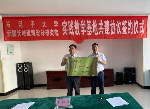 此行学院还与新疆长城建筑设计院有限公司、新疆昆仑工程咨询管理集团有限公司签订实践教学基地共建协议,并进行挂牌。