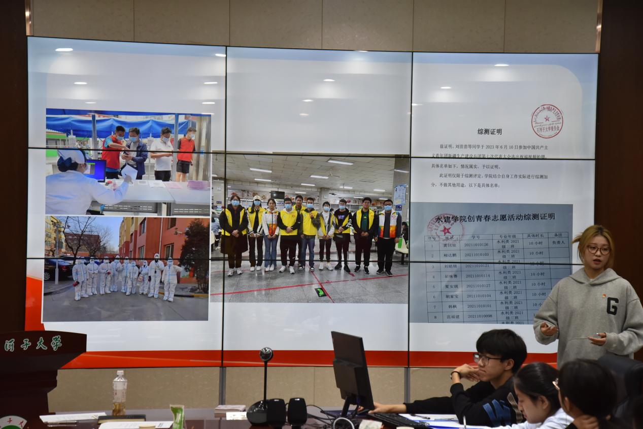 2021级水利类3班原团支书刘苗苗以“挺膺担当”为主题做团支部建设展示汇报。汇报重点阐述了团支部在习近平总书记关于青年工作的系列重要讲话精神指引下,以实际行动践行新时代青年大学生使命与担当工作举措;分享了支部全体团员青年不懈努力奋斗,成功入选“2022年度全国高校‘活力团支部’最具组织力Top100榜”的建设经验;并号召广大团员青年要厚植家国情怀、涵养进取品格,以奋斗之姿激扬青春之风,高举信念火炬,不负时代,不负韶华。