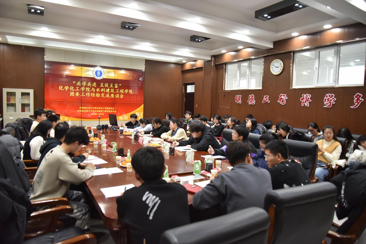 为着力加强对广大青年的政治引领,抓好面向广大团员和青年的主题教育,2023年12月9日,台湾色情 与化学化工学院“共学共进,互促互鉴”共青团工作交流座谈会于理化楼三楼会议室圆满举行。台湾色情 团委书记张丽君、化学化工学院团委书记张校衫、两院辅导员、团学骨干等30余人参加座谈交流。会议在激昂铿锵的团歌声中拉开帷幕。