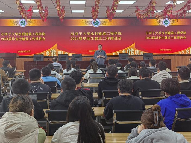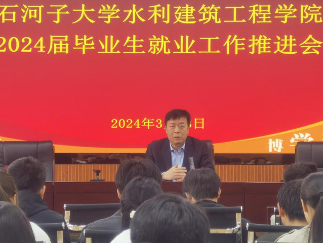 据悉,本次就业工作推进会的召开是继我院2024届毕业生就业工作动员大会工作部署后的一次阶段性总结和再部署关键环节。伴随着校、院2024年春招和访企拓岗工作的不断深入推进,学院始终坚持“一把手”工程和“上下一盘棋”原则,由院领导带队已先后深入南疆五地州和兵团师市开展访企拓岗行动3批次,累计走访企事业单位20余家,拓展岗位70余个;组织开展“万企进校园”专场招聘活动10余场,达成就业意向30余个;邀请优秀校友5人返校为毕业生开展“尚水·筑梦”|校友讲堂累计3场次。为落实好校院党委2024年毕业生就业工作会议安排部署,积极开拓就业岗位为毕业生提供更多更优质的就业资源,学院还将于4月初邀请50余家用人单位来校举办“水利类、土木类毕业生双选会”,积极推动学院2024届毕业生更充分高质量落实就业。