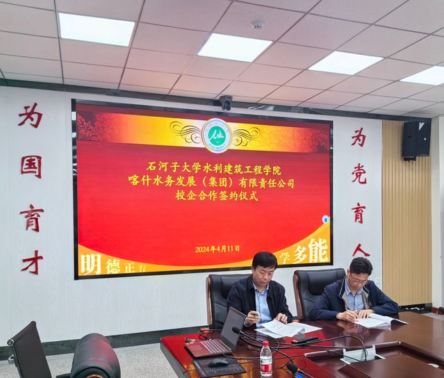 近日,喀什水发集团、喀什疆南设计院、峻特设计院喀什分院、峻特设计院乌市分院应邀来学院开展招聘宣讲活动并与学院领导进行交流座谈,学院党委书记汤骅与喀什水发集团董事长刘俊利签署校企合作协议。