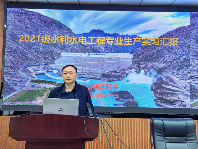 汇报会首先由金瑾代表水利水电工程系对此次2021级水利水电工程专业生产实习工作安排及开展总体情况进行汇报,随后参加生产实习的同学以实习小组为单位对实习项目概况、实习成果和实习收获进行汇报,学院教学督导组和系专任教师代表担任评委进行点评并打分。