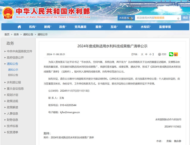 据悉,水利部遴选的成熟适用水利科技成果推广清单是进一步发挥科技对新阶段水利高质量发展支撑保障作用的重要举措,每年初启动征集,面向行业内外征集遴选百项左右成熟适用水利科技成果并在全国推广运用,每年发布一次。2024年,经严格筛选,全国共有91项科技成果入选成熟适用水利科技成果推广清单,其中新疆单位主持的水利科技成果仅入选1项。