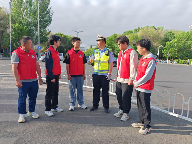 国际劳动节当日,马克思主义学院思政指导教师樊家军、带队教师张壮壮、全体参与实践学生身穿志愿服装按时到达石河子市城区9个交通重点路口,积极协助民警开展交通秩序维护、违规行为劝导、安全知识宣讲等工作,以高度的责任感和使命感投身到交通政务实践中。