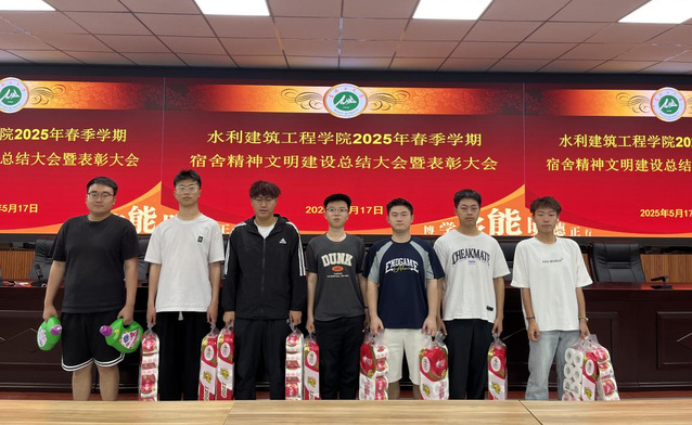 会议表彰了在2025年春季学期宿舍安全卫生中期评比中获得“优秀”的16间宿舍,娄哲为获奖宿舍代表颁发流动红旗和奖品。