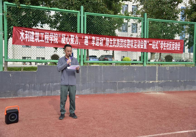 袁康在开幕式致辞中表示,本次活动以“趣味”为纽带,以“团结”为主题,不仅是一场寓教于乐的户外运动盛会,更是促进学院各民族师生交往、交流和交融的重要实践。希望全体参赛师生在趣味运动中手拉手、心连心,充分展现团结协作、奋勇争先的精神风貌,让民族团结之花在运动场上绚丽绽放。