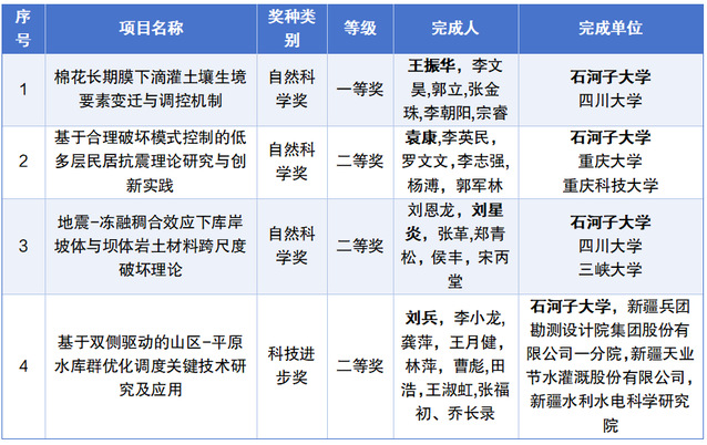 近日,新疆生产建设兵团科学技术奖励结果揭晓,我院斩获兵团自然科技一等奖1项、二等奖2项,兵团科技进步二等奖1项 。其中,自然科学奖一等奖实现学院历史性突破,该类别获奖数量创历年新高,为学校及兵团科技发展注入强劲动能。