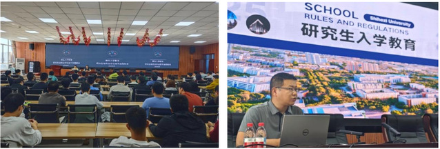 在制度建设方面,为进一步强化研究生行为管理、引导学生遵规守纪、自警自律,学院党委副书记娄哲结合典型案例,围绕相关法律法规和校纪校规开展专题教育,引导新生严格遵守校纪校规、做好自身安全防护,树立规矩和自律意识;研究生辅导员周鑫老师就日常事务办理与请销假管理制度等与学生面对面进行解读和交流咨询。