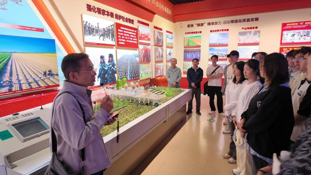 专业实践赋能思政,技术讲解深化认知。在军垦博物馆节水灌溉技术展区,范文波教授通过实物模型,现场讲授“膜下滴灌技术”发展与应用。将专业知识与军垦历史、兵团发展紧密联系,让同学们更深刻地认识到农业水利工程专业在服务国家农业发展、助力边疆建设中的重要意义。