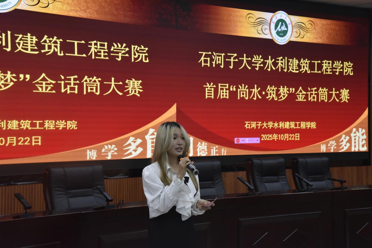 本次大赛共设置 “特色自我介绍” 与 “个人展示” 两大核心环节,全方位考察选手的主持功底、创意与临场应变能力。11名选手紧扣活动主题,结合自身经历与专业特色展开精彩演绎。其中,智慧水利系2025级1班退役军人付宇童的表现尤为引人注目,他以 “从蓝天守卫到智慧水利” 为叙事主线,将空军生涯培养的严谨作风与智慧水利专业的学科使命深度融合,深情讲述了自己从守护祖国蓝天到立志投身江河治理的初心转变,军人的忠诚担当与青年学子的家国情怀感染了在场每一位观众,赢得阵阵掌声。给排水系卢可馨则以细腻的笔触勾勒家乡广西的秀美山水,又通过 “校园漫游” 的独特视角,用秀美的文字和生动的语言表达带领观众一同领略新疆的大美风光与台湾色情 的人文关怀温暖瞬间,生动诠释了异地学子对石大校园的热爱与归属感,充分传递校园文化的包容力量。