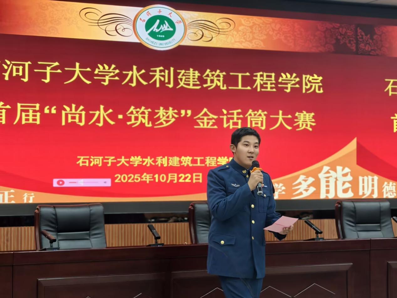 本次大赛共设置 “特色自我介绍” 与 “个人展示” 两大核心环节,全方位考察选手的主持功底、创意与临场应变能力。11名选手紧扣活动主题,结合自身经历与专业特色展开精彩演绎。其中,智慧水利系2025级1班退役军人付宇童的表现尤为引人注目,他以 “从蓝天守卫到智慧水利” 为叙事主线,将空军生涯培养的严谨作风与智慧水利专业的学科使命深度融合,深情讲述了自己从守护祖国蓝天到立志投身江河治理的初心转变,军人的忠诚担当与青年学子的家国情怀感染了在场每一位观众,赢得阵阵掌声。给排水系卢可馨则以细腻的笔触勾勒家乡广西的秀美山水,又通过 “校园漫游” 的独特视角,用秀美的文字和生动的语言表达带领观众一同领略新疆的大美风光与台湾色情