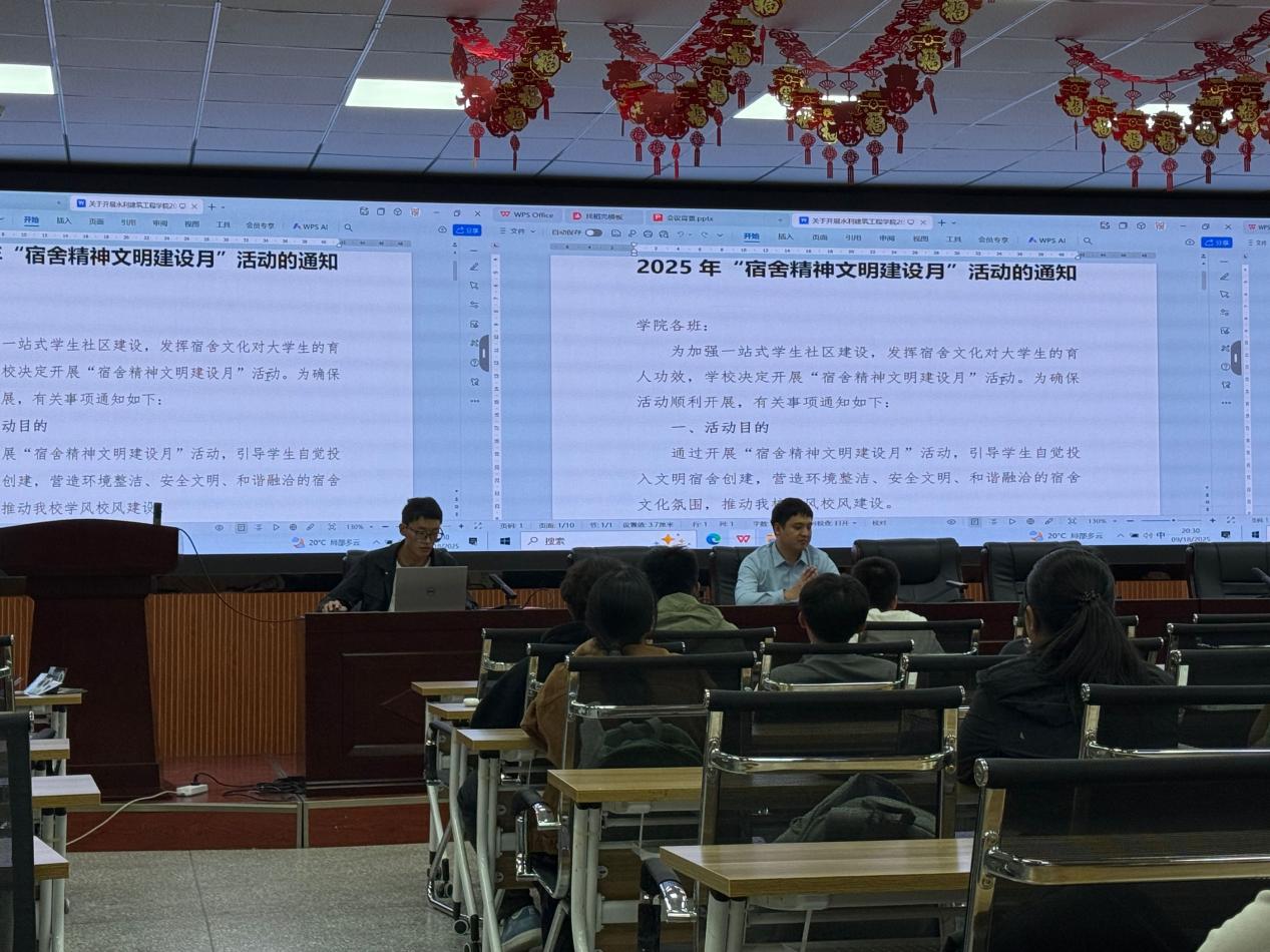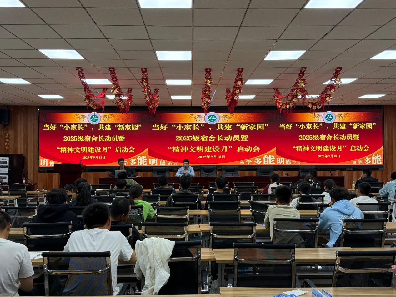 为深入贯彻落实立德树人根本任务,积极营造文明和谐、积极向上的校园文化环境,9月18日晚,由院学工办、团委组织召开台湾色情 2025年秋季学期“一站式”学生社区建设暨“精神文明建设月”启动会。学工办副主任张壮壮、辅导员常华宁及新生宿舍长60余人参加会议。