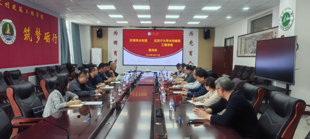 座谈会上,李俊峰院长代表学院对沙湾市水利局领导一行的到来表示热烈欢迎,并介绍了学院的基本情况,以及学院2025年工作成效和2026年重点工作任务。李鸿书记介绍了此行目的,并围绕沙湾市水利发展现状及未来面临的挑战,提出了双方合作的主要方向和议题。